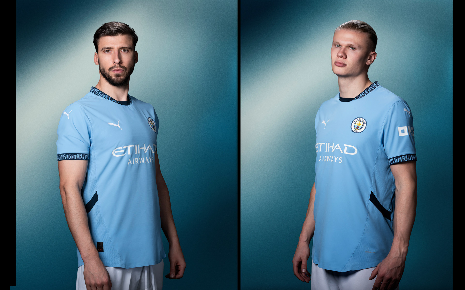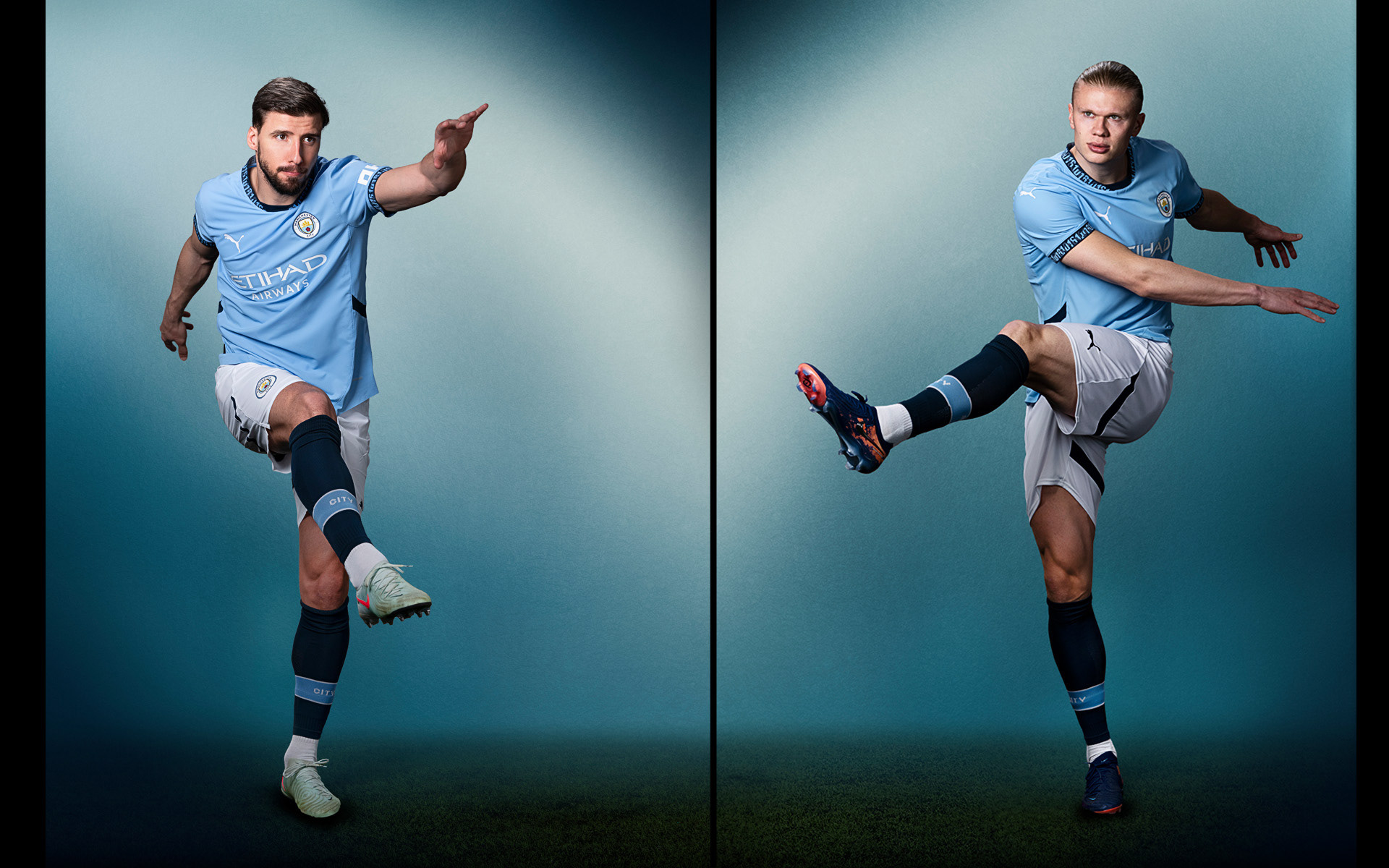 Manchester City home kit 25-26 Rúben Dias and Erling Haaland: ©P Cooper